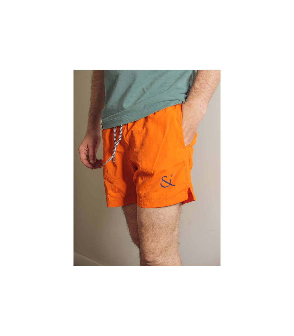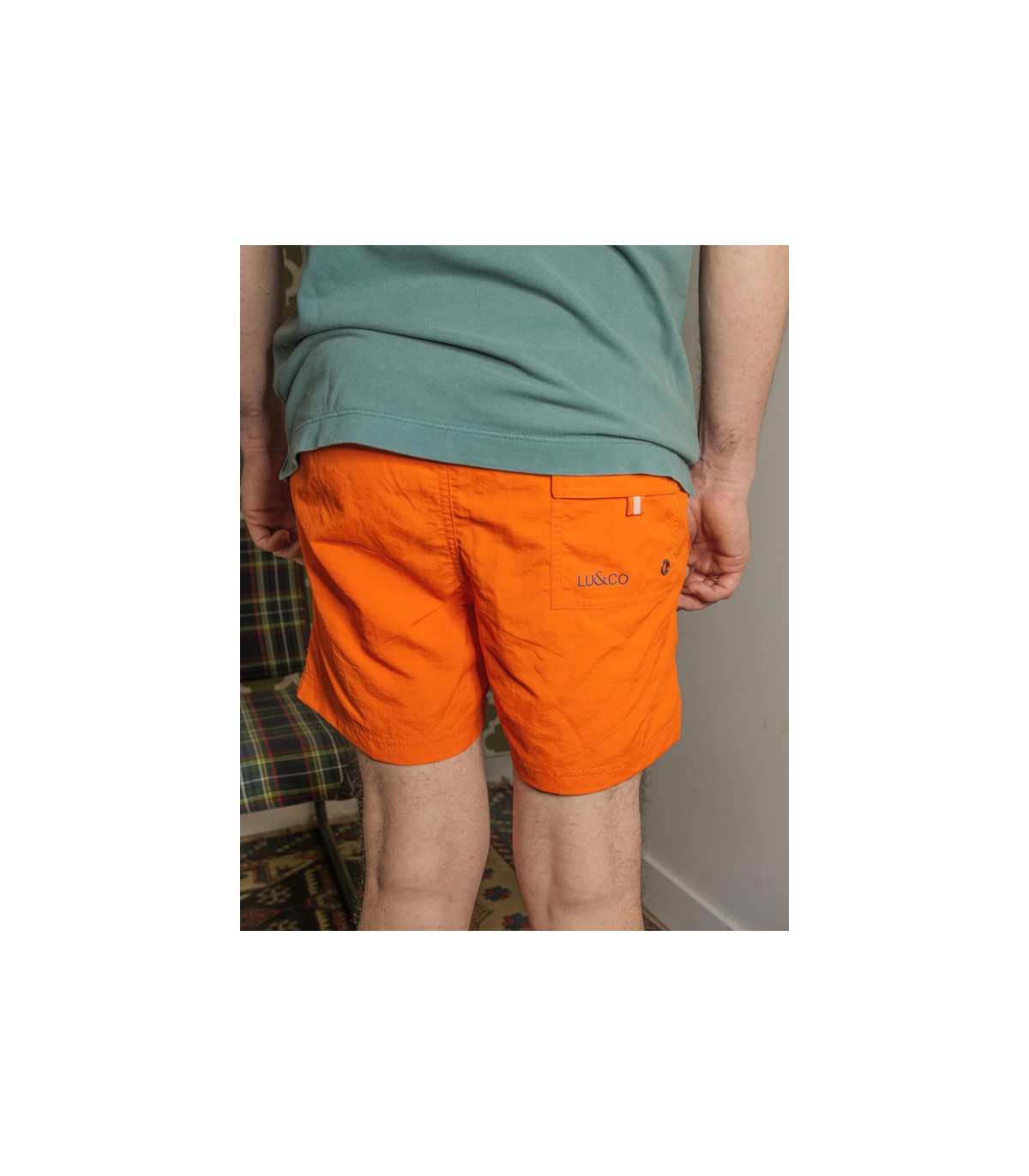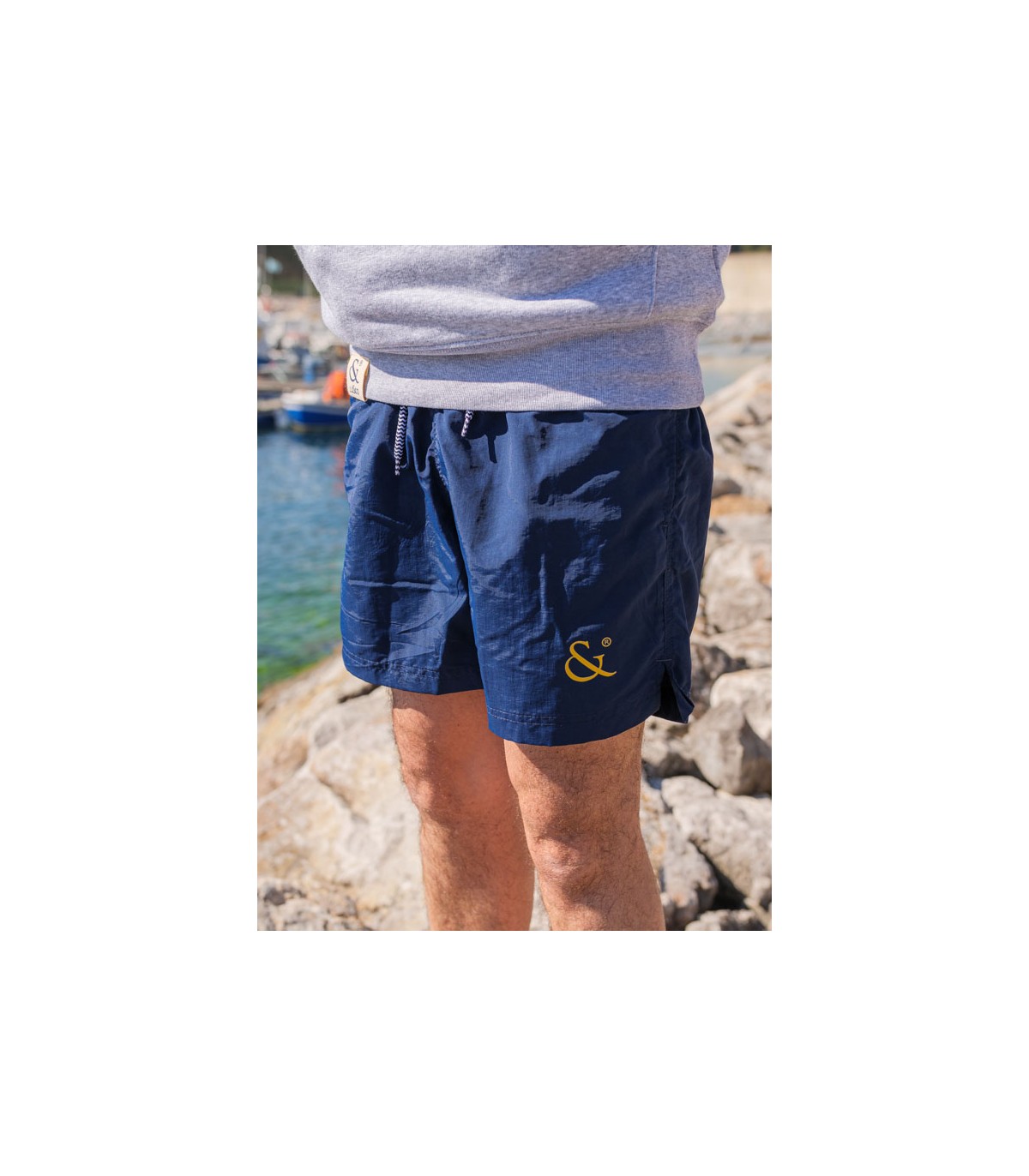 Bañador tipo bóxer con bolsillo trasero y forro interior.