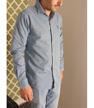 Camisa de algodón AZUL DENIM, logo azul marino bordado en el pecho.