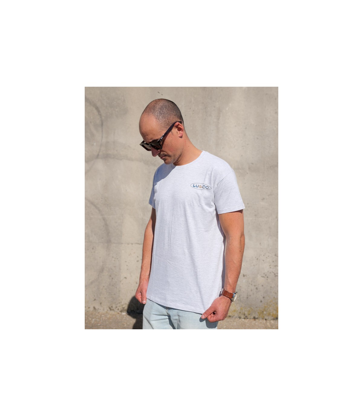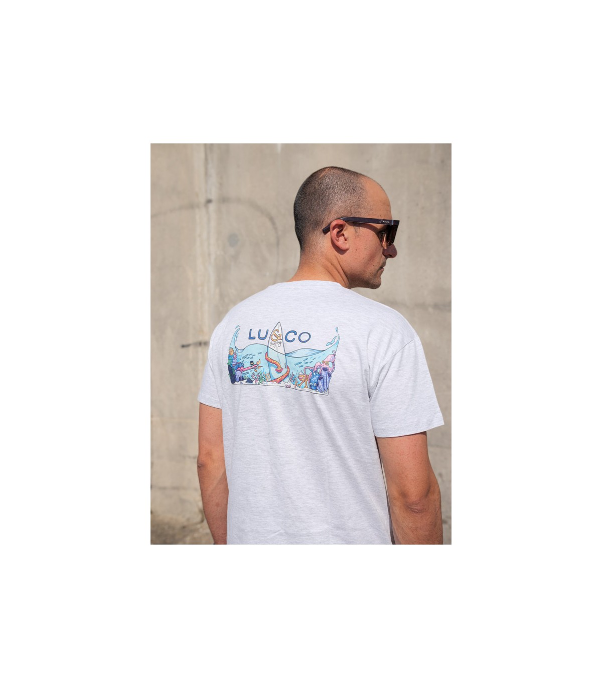 Camiseta de algodón de hombre con cuello redondo y estampación en el pecho y espalda.