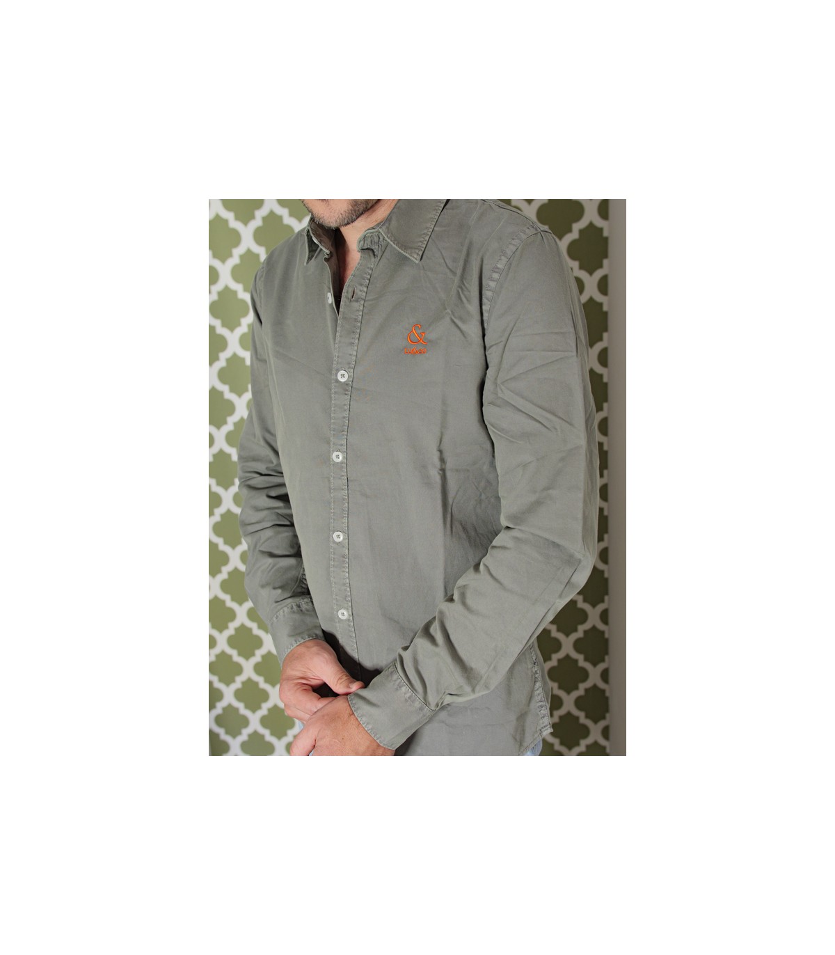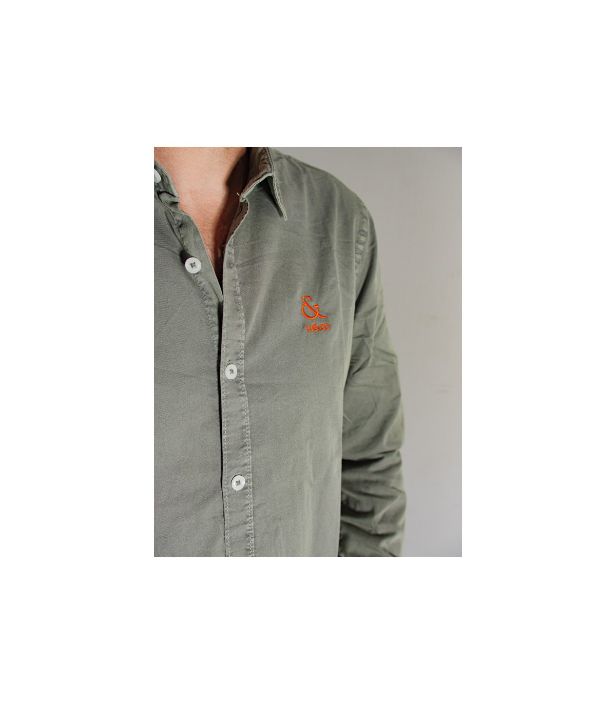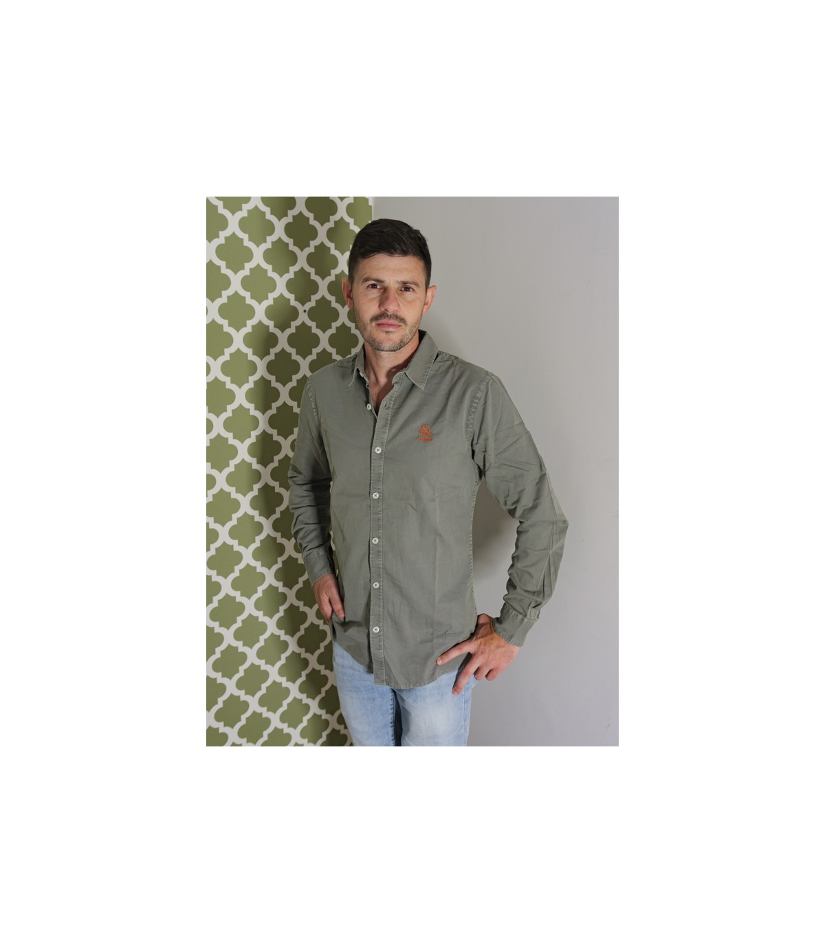Camisa de algodón verde KHAKI, logo bordado en el pecho.