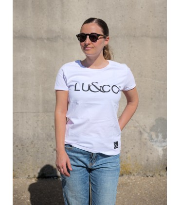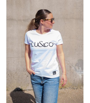 Camiseta de mujer de cuello redondo con estampación en goma.