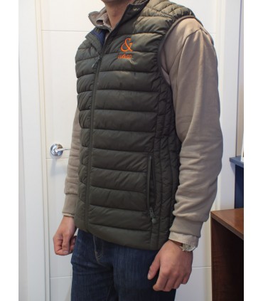 Chaleco 100% poliamida, forro interior de poliéster, cálido y ultraligero.
