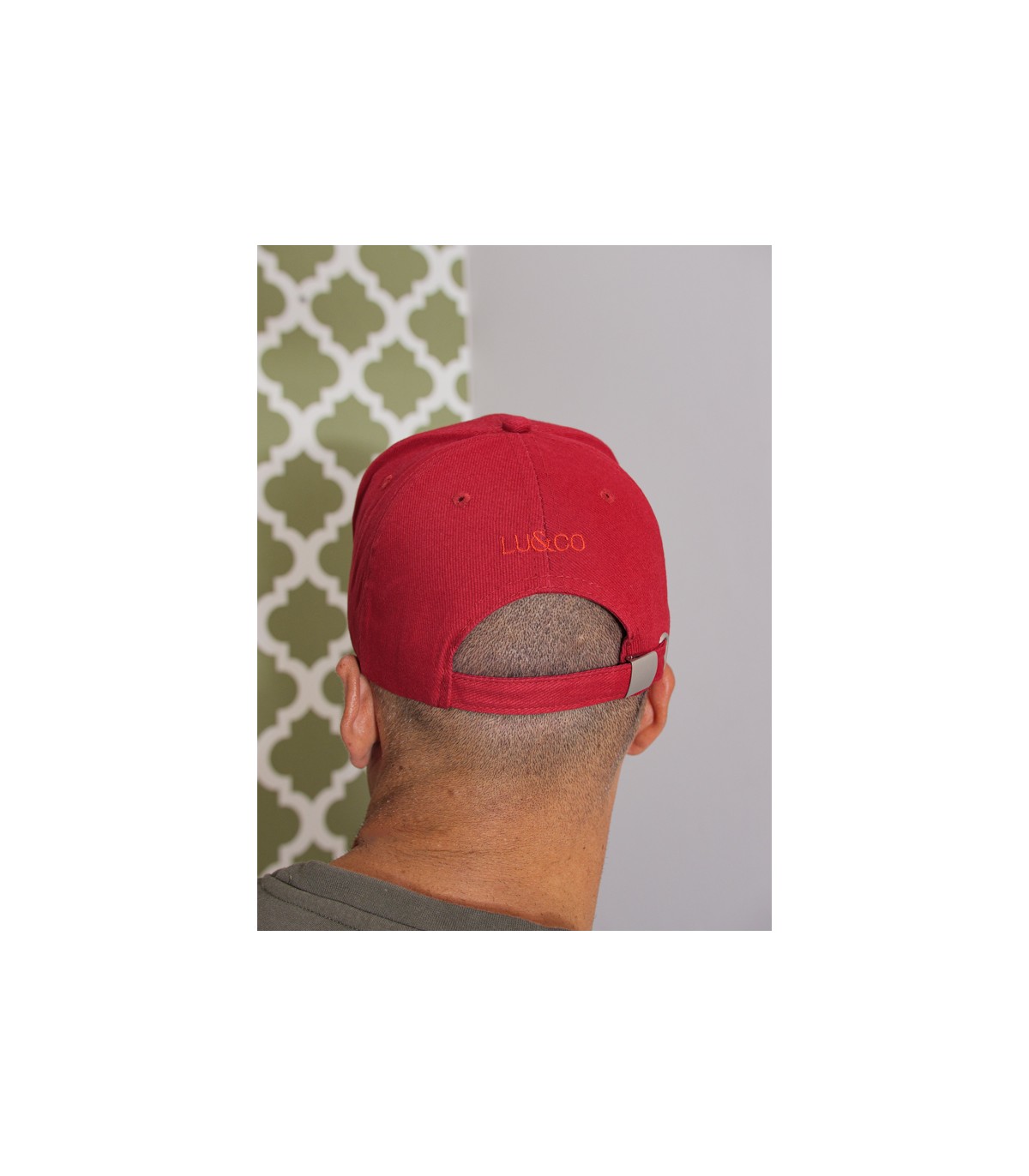 Gorra moderna de 6 paneles, 100 % Algodón Drill grueso peinado, hebilla tri-glide metálica para ajuste y logos bordados en las zonas  delantera y trasera.