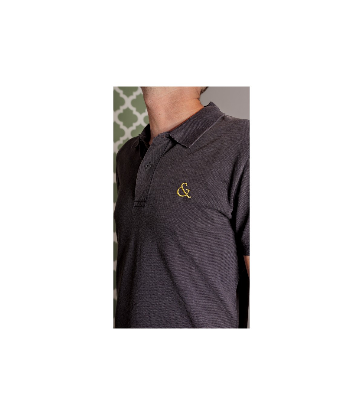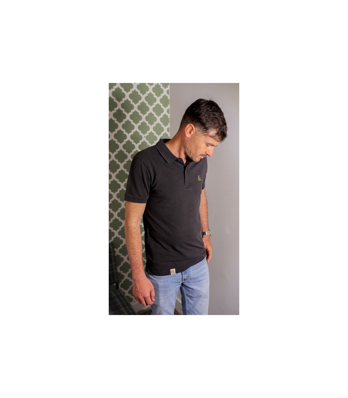 Polo de corte recto, logo bordado y etiqueta inferior.