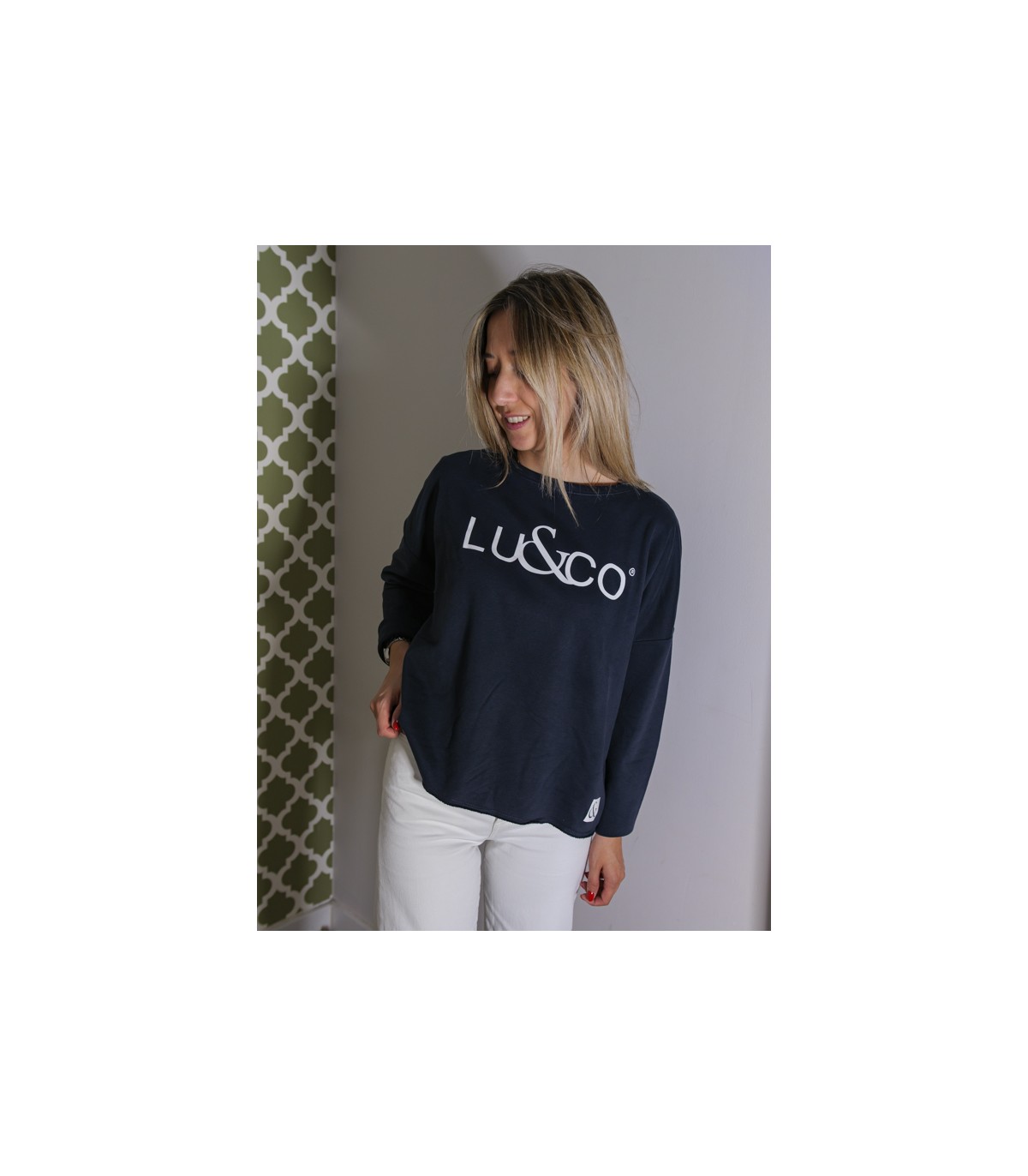 Sudadera de corte suelto distendido, sin forro interior, tacto muy suave, composición 90% algodón 10% polyester