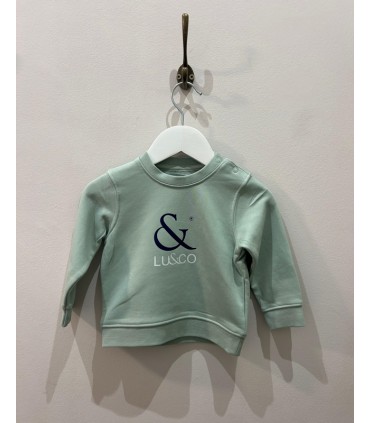 Sudadera de bebé de tacto suave (85% algodón orgánico / 15% poliéster reciclado), interior de felpa perchada, cierre en cuello para mejor colocación y logo estampado en vinilo.