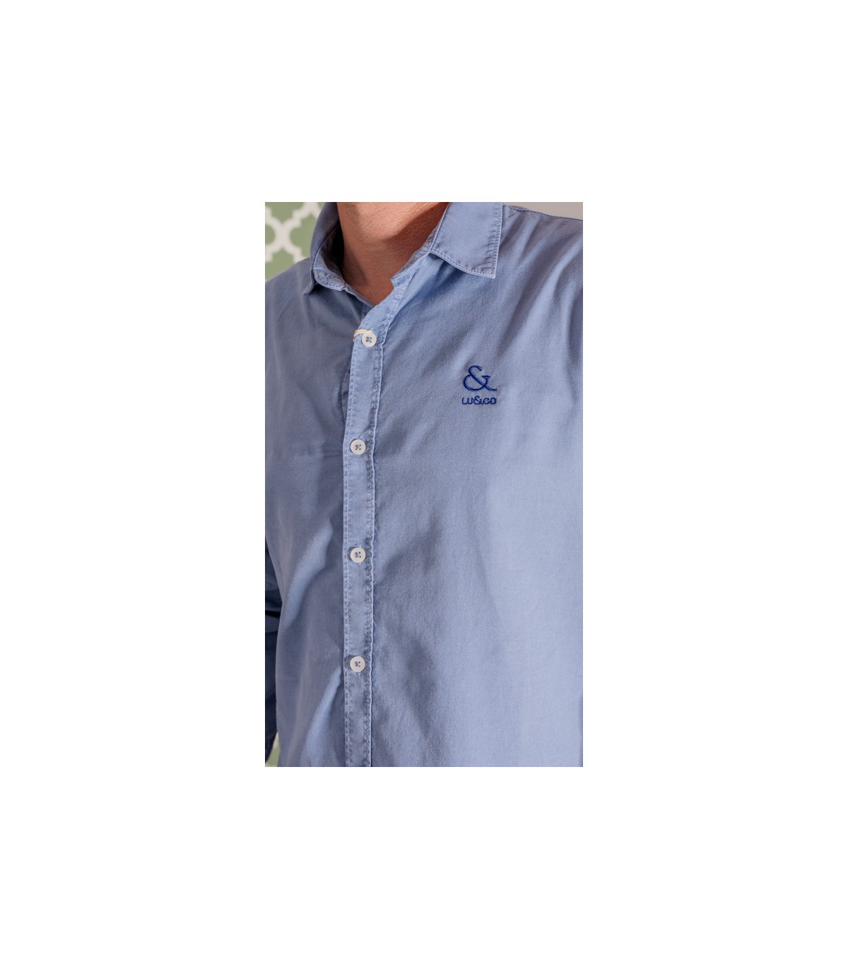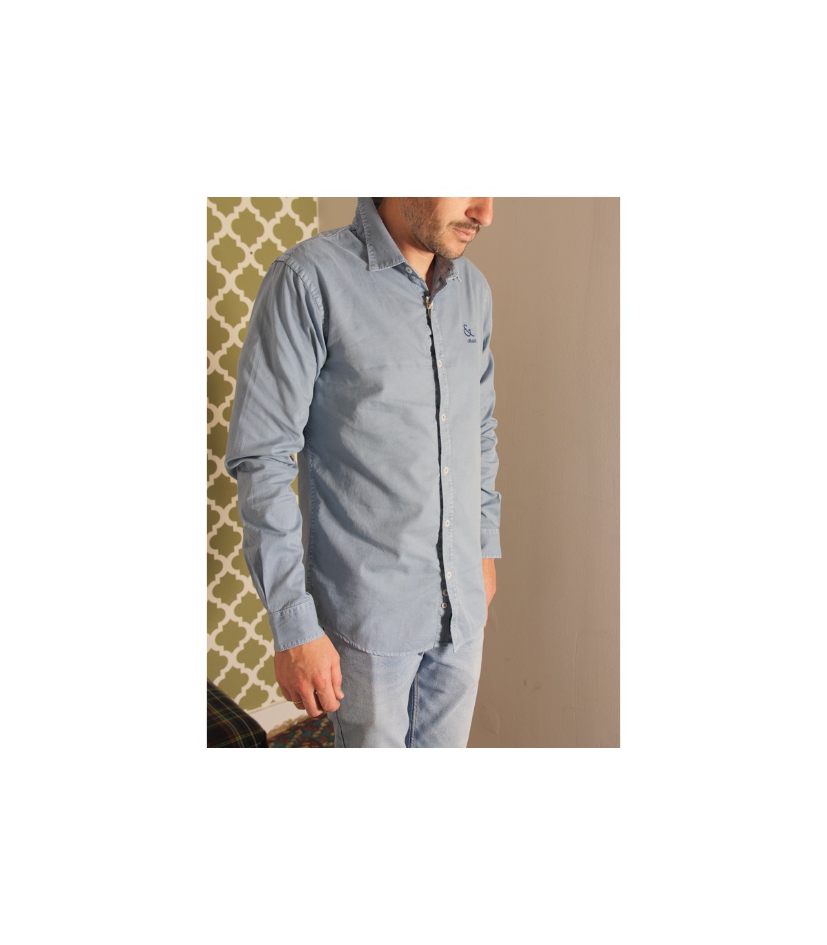 Camisa de algodón AZUL DENIM, logo azul marino bordado en el pecho.